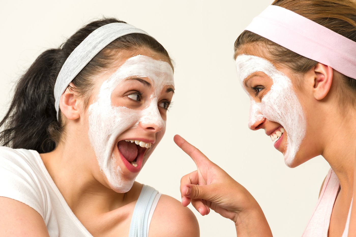 Joyful girls wearing white mask and laughing at each other, Image: 164246761, License: Royalty-free, Restrictions: , Model Release: yes, Credit line: Profimedia, CandyBox