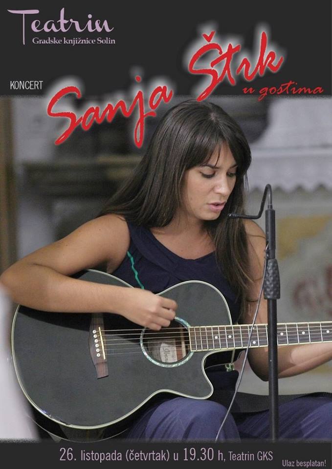 U goste Gradskoj knjižnici Solin stiže mlada glazbenica Sanja Štrk. Mnogi će je prepoznati kao jedan od glavnih vokala solinskog Vokalno istrumentalnog sastava Papa band, ali Sanja često nastupa i samostalno te je već pobrala i niz nagrada na raznim glazbenim festivalima.