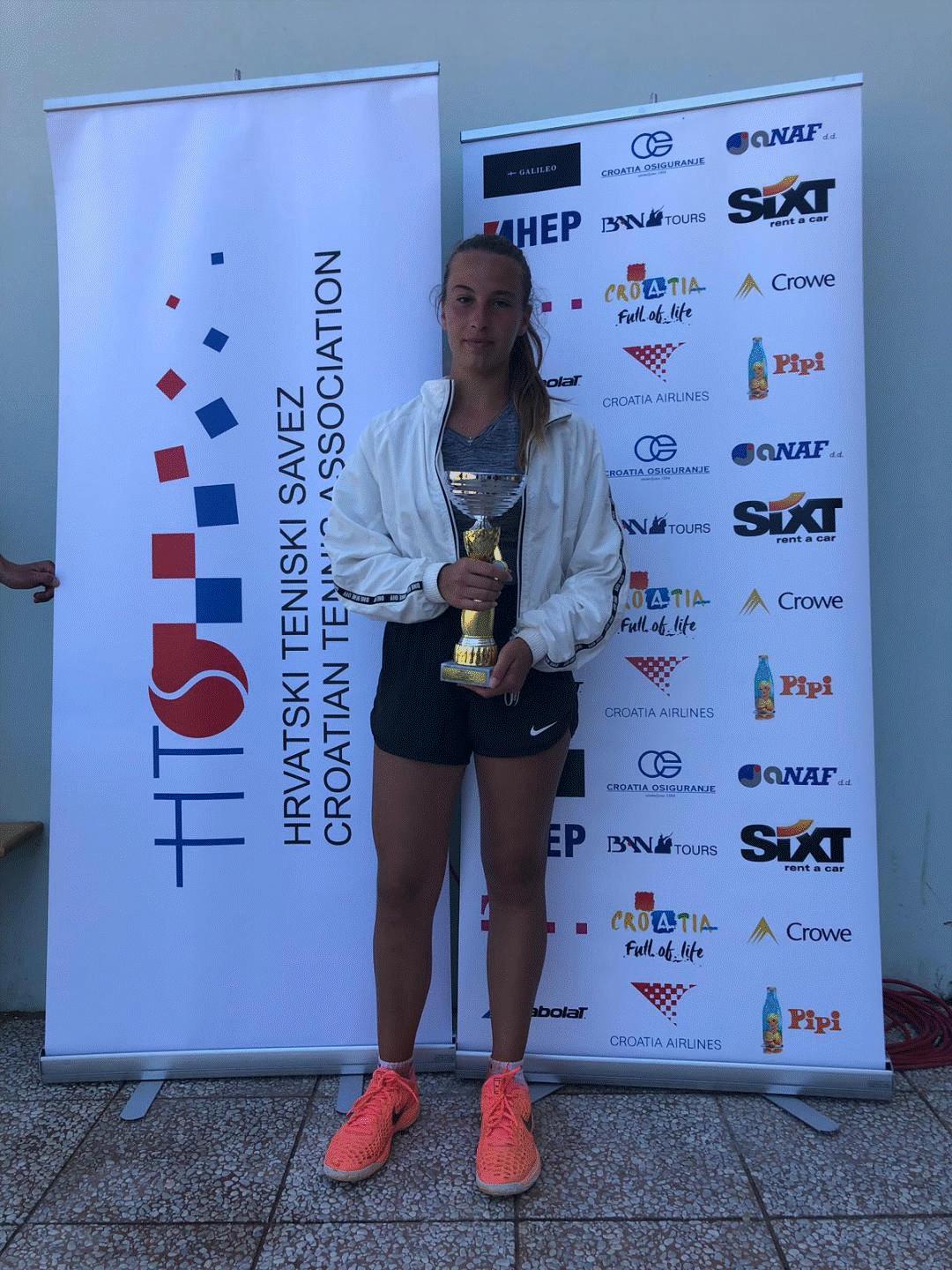 SOLIN – Stella Knez, članica Teniskog kluba Dalmacijacement iz Solina nastavlja zapaženim rezultatima na državnoj razini. Na terenima u Zadru od 22. do 25. svibnja 2019. održano je Prvenstvo Hrvatske u tenisu za djevojčice i dječake do 14 godina na kojem je Stella Knez igrajući u paru s Tarom Sladaković (SMR) postala viceprvakinja Hrvatske u konkurenciji parova.