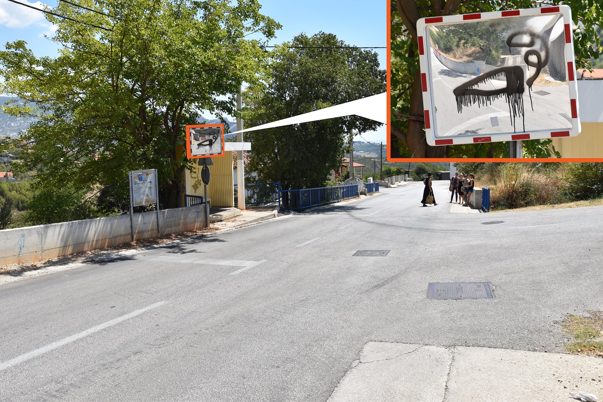 Bili smo na tom mjestu i sami se uvjerili da je zaista riječ o prometnom ogledalu išaranom crnom bojom. Lokalni stanovnici nam tvrde da su u više navrata upozoravali odgovorne u mjesnom odboru, a i čelne ljude Grada Solina i još se ništa nije promijenilo. Odgovorni iz Solina pribacuju lopticu na županiju, županija na grad, tvrde stanovnici.