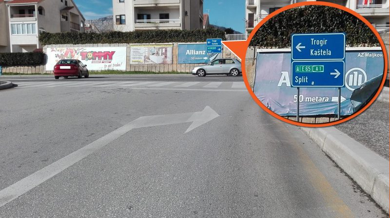 Kako vas ovaj znak iz Vrdova nasmije, tako ovi naš solinski nekim nesretnim vozačima i nije bija smiješan. I sami smo se uvjerili, na sjevernom izlazu iz “Mercatora”(Konzum) oznaka na cesti nas usmjerava u desno, ali odmah idući znak kaže suprotno, i lijevo i desno.