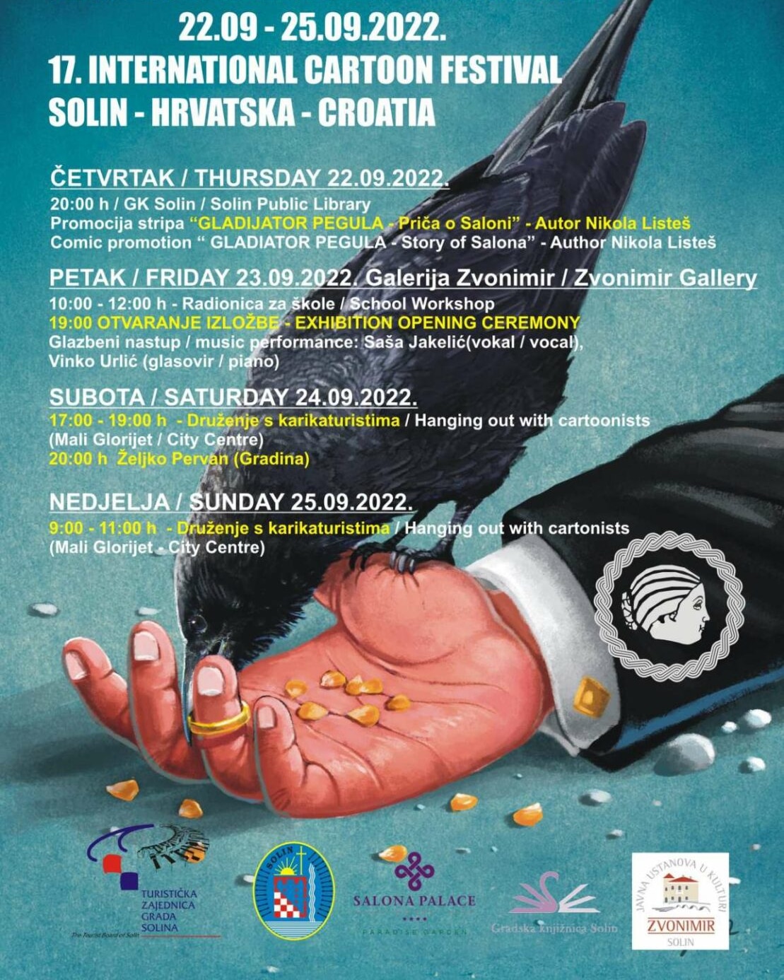 Na konferenciji za medije, održanoj danas u Galeriji „Zvonimir“ najavljen je program 17. Međunarodnog festivala karikatura koji će se odvijati u Solinu od 22. do 25. rujna.