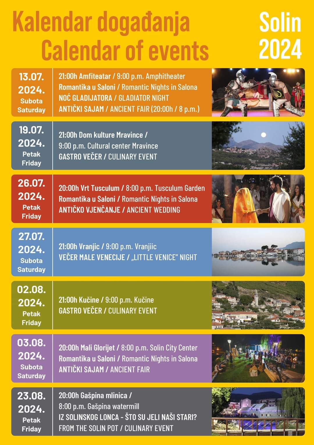 Kalendar događanja u organizaciji Turističke zajednice Grada Solina