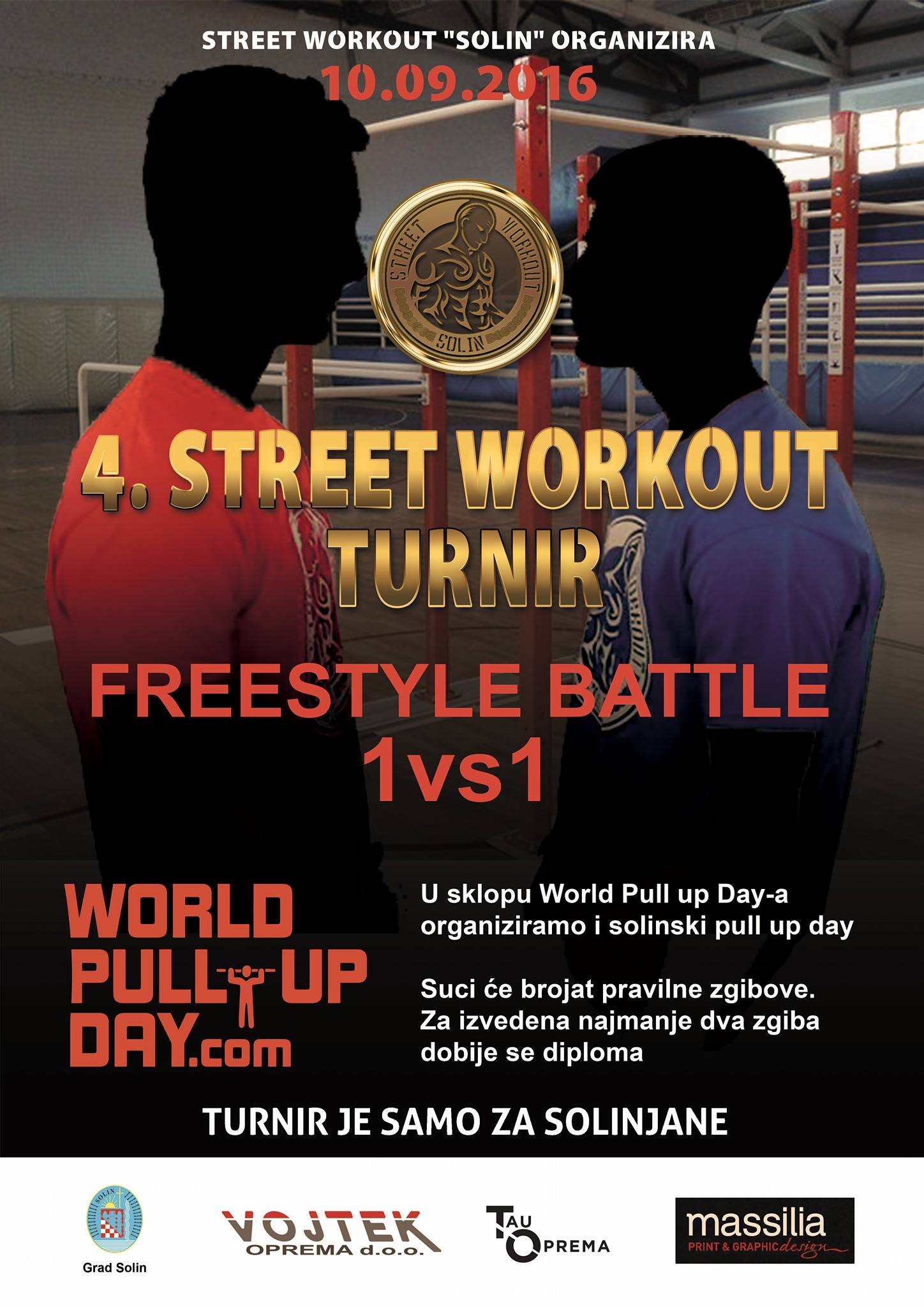 U subotu 10.09. od 19:00 do 21:00 u park na Bilankuši održat će se 4. Street workotu turnir, Freestyle battle 1 vs 1 i World pull up day.