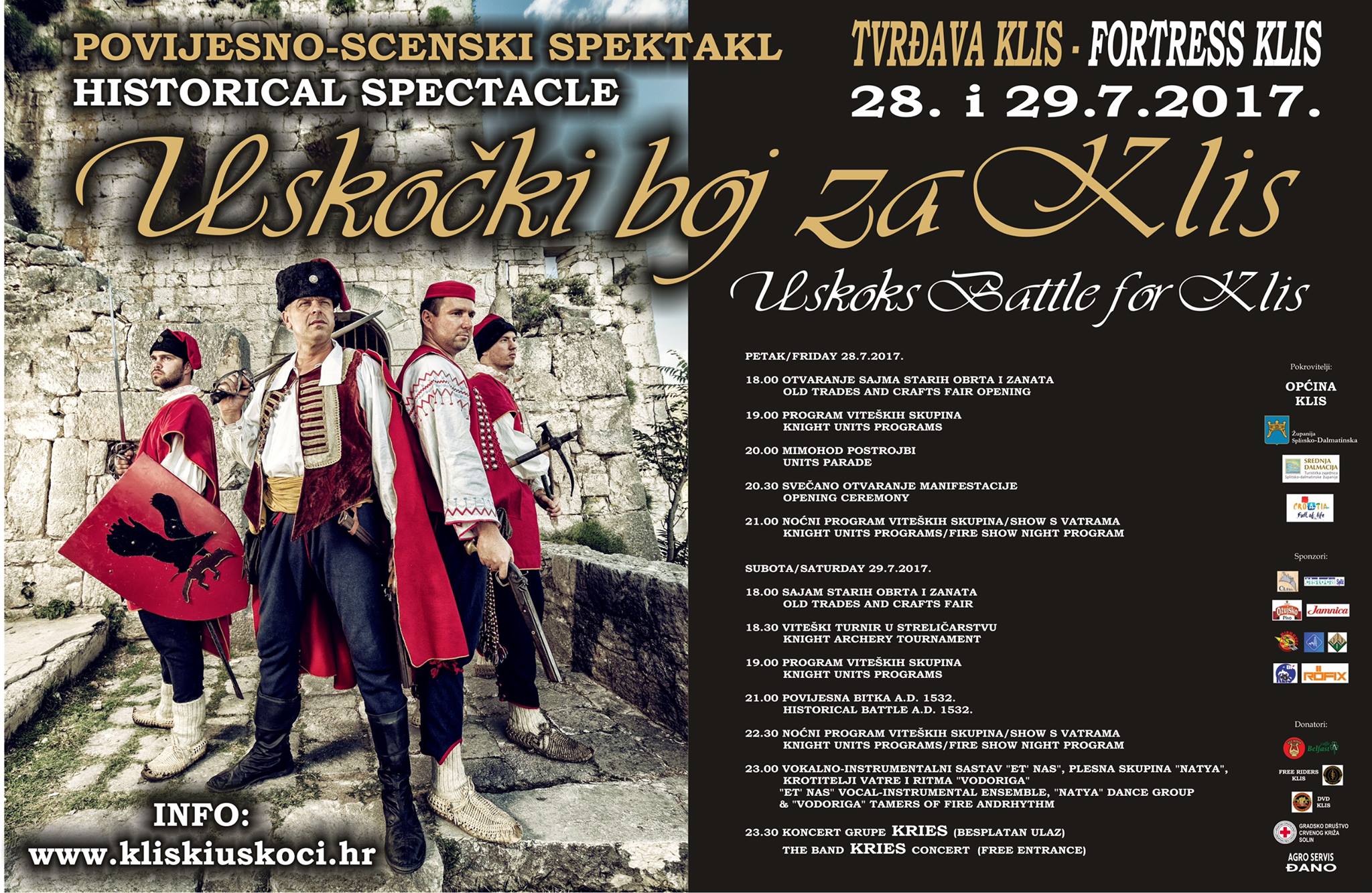 Povijesno-scenski spektakl “Uskočki boj za Klis” je međunarodna manifestacija koju organizira Povijesna postrojba Kliški uskoci. Dvodnevni spektakl oživljene povijesti u kojem sudjeluje preko 250 članova povijesnih postrojbi i viteških skupina iz cijele Hrvatske i Europe vraća posjetitelje u srednji vijek i doba obrane Klisa od Osmanlija.