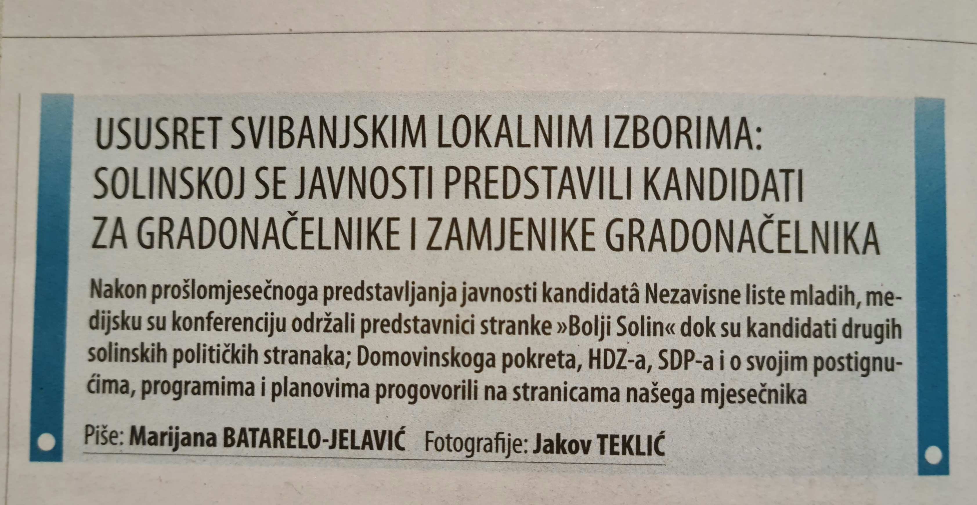 Druga strana iznijeti će obranu da su u prošlom broju predstavili Vedrana Duvnjaka, kandidata za gradonačelnika stranke NLM Solin. I istina je, ali na njihovu obranu nameću se pitanja;