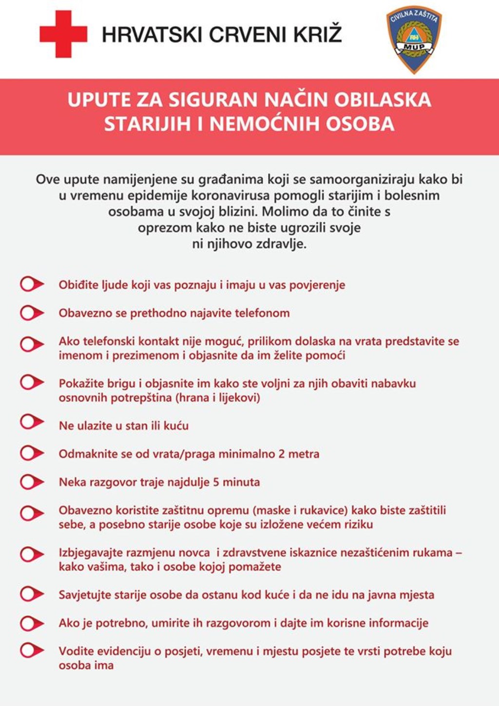 Za sve one koji, neovisno o Crvenom križu, uz najbolje namjere žele pomoći svojim bližnjima neka se pridržavaju ovih uputa. Ovakvo postupanje smanjuje rizik od zaraze.