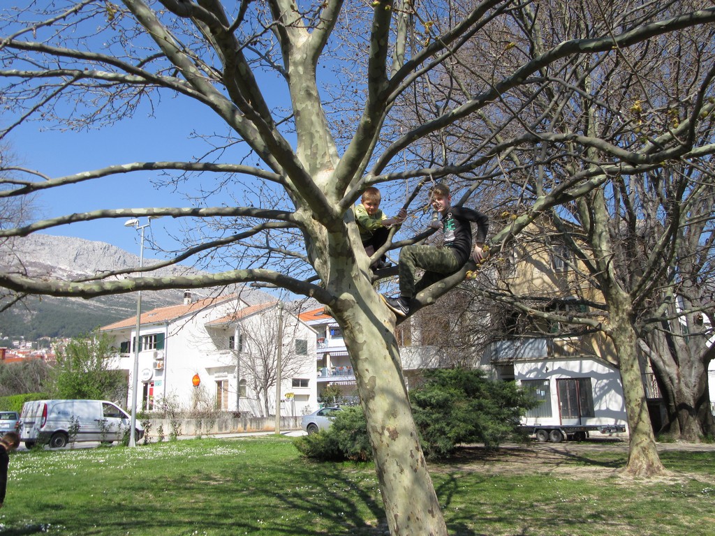 Šetajući Solinom ugodno sam se iznenadio ovim prizorom. Dok svi govorimo kako se današnja djeca ne znaju igrati, drugi to negiraju uz argument kako svako vrijeme nosi svoje. No svi se slažemo da današnje igre i sva sila igračaka sputavaju dječje stvaralaštvo i kreativnost, nudeći im gotov proizvod koji već ima svoju priču, oblik, savršenstvo, ne dopuštajući im zapravo da maštaju. A dobro znamo koliko toga može učiniti dječja mašta koja nema granica. I zato alat u ruke i na tom stablu napravite svoju kućicu 🙂