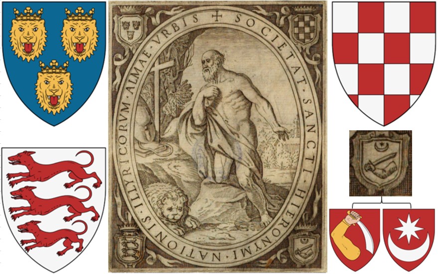 Letak kojeg je oko 1584. izradio Bože Bonifačić, prema narudžbi bratovštine sv. Jeronima iz Rima. Uz lik sv. Jeronima u kutovima vidljivi su zemaljski grbovi Dalmacije (tri okrunjene leopardove glave), Hrvatske (šahirana polja), „Slovinja“ (tri lovačka psa u trku) te štit na kojem je prisutna kombinacija znamenja Bosne (ruka sa sabljom) i imaginarne „Ilirije“ (polumjesec i zvijezda)