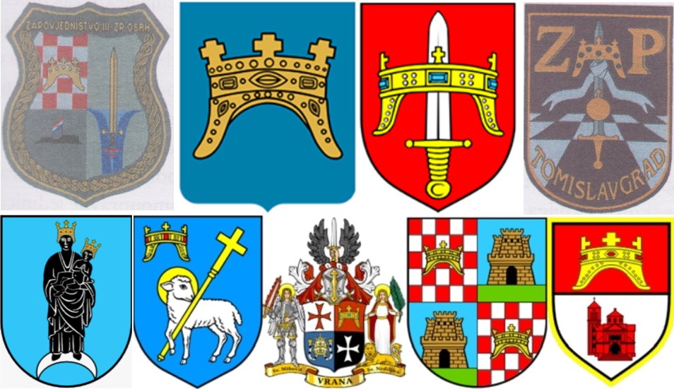 Primjeri heraldičke uporabe starohrvatske krune Trpimirovića tijekom Domovinskog rata i u suvremenoj municipalnoj heraldici Hrvatske i Bosne i Hercegovine: znakovlje Zapovjedništva III. zbornog područja OS (Split, Knin), Zbornog područja Tomislavgrad; aktualni grbovi Splitsko-dalmatinske i Šibensko-kninske županije; municipalna heraldička znamenja Marije Bistrice, Knina, Vrane, Biograda i Tomislavgrada