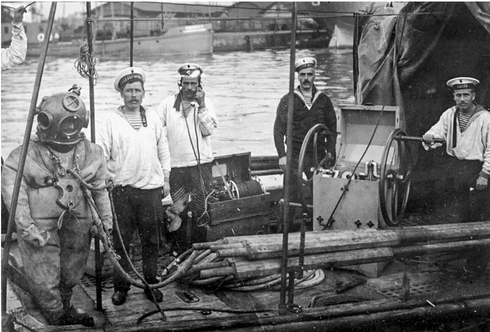 Ukazom cara Aleksandra III. u gradu Kronštadtu na otoku Kotlin u Finskom zaljevu 5. svibnja 1882. godine osnovana je prva Ronilačka škola u Ruskom Carstvu. Njen je zadatak bio pripremati “časnike iskusne u ronjenju, kao i niže činove, za brodske potrebe i rad s podvodnim minama”.