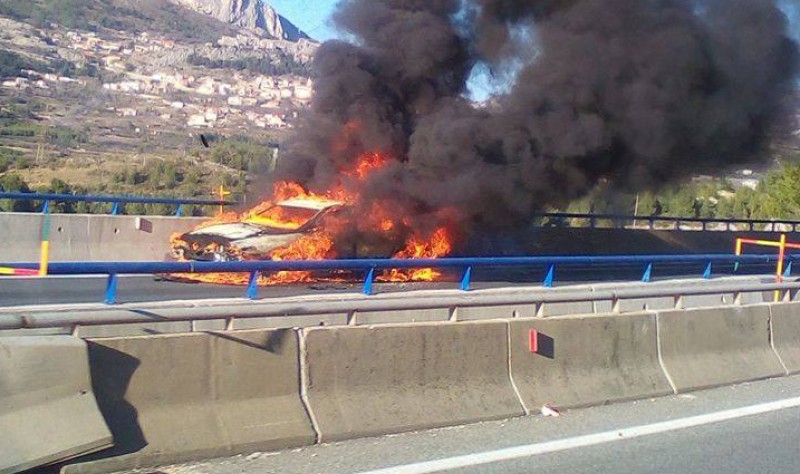 U vožnji je planula Alfa Romeo, vozač je odmah stao u desni trak no nije mogao spriječiti širenje vatre – Alfu je progutao požar. Srećom nije bilo ozlijeđenih. Odmah su se počele stvarati prometne gužve u smjeru Splita pa je ta dionica D1 (u smjeru Splita dakle) do daljnjega zatvorena za promet.